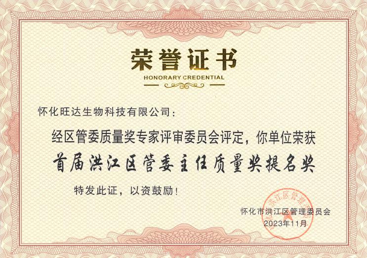 公司喜获洪江区质量强区暨首届区管委主任质量奖提名奖,副总经理冯小华获洪江区质量强区暨首届区管委主任质量奖个人奖。在今后的工作中,公司将一如既往的抓好产品质量工作,以更高标准、更严举措,打基础、补短板、强弱项、增后劲,坚定不移地把质量战略进行到底。